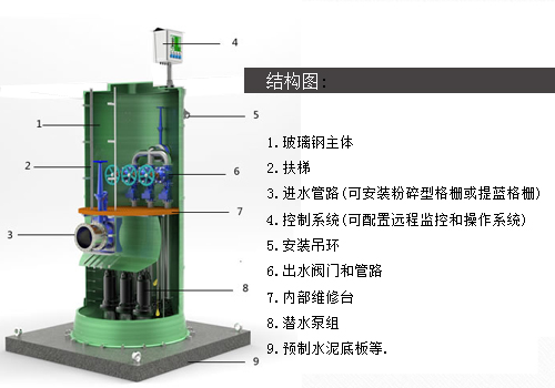 所有部件在工廠內(nèi)生產完成,每一個部件都是為(wéi)了長遠可靠地(dì)使用所細致考慮的,滿足(zú)幾十年的使用要求,並且匹配。纖維纏繞玻璃鋼(gāng)筒體可以完全抵抗腐蝕,並保證防水,帶自清潔泵坑,設備無人值守就可以運行,零滲漏,減少臭味和淤(yū)積。每一套預製泵站都是根據客戶定製,甚到(dào)是(shì)現場製作。