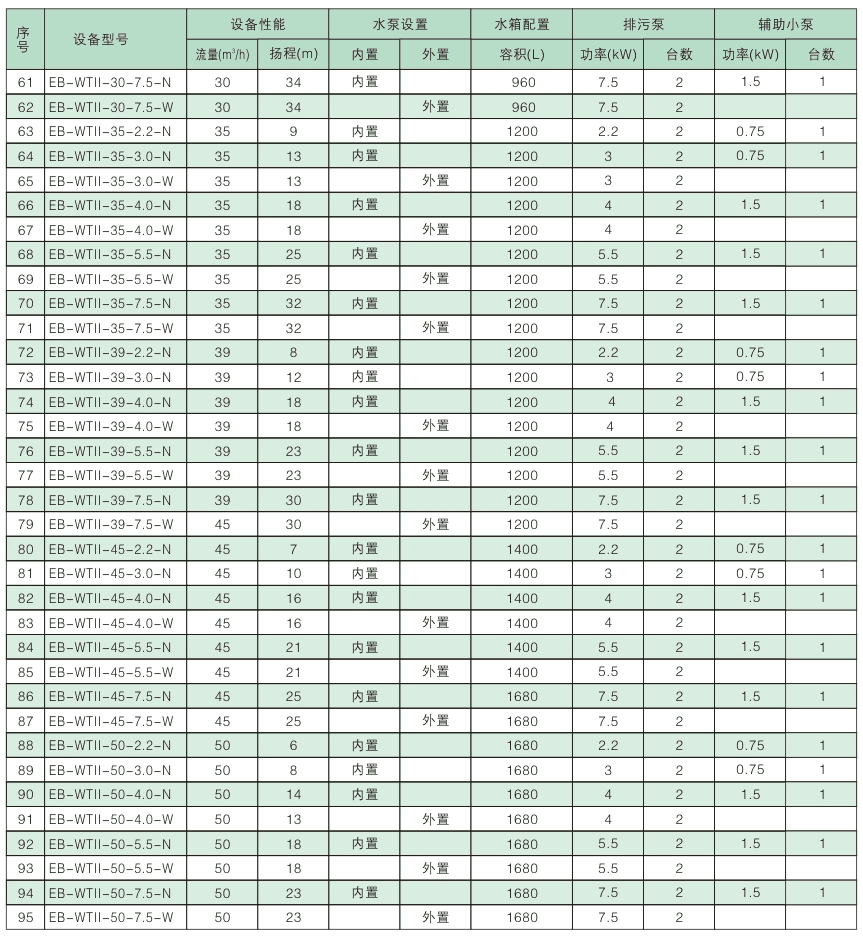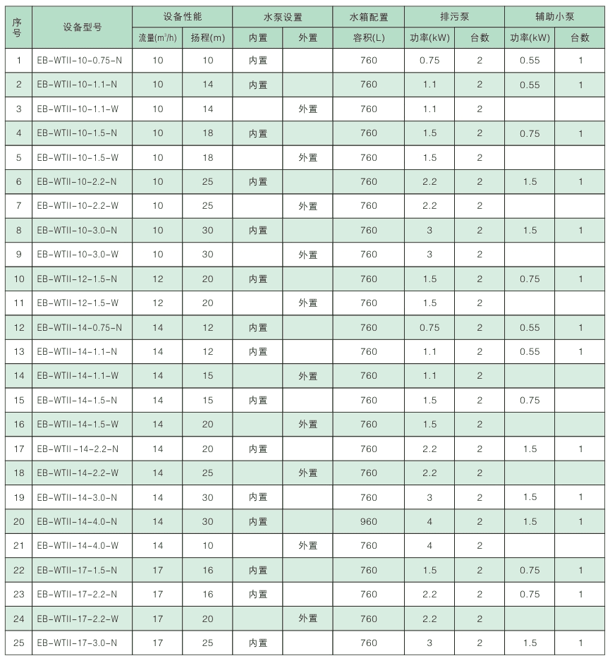 EB-WT係列智能汙水提升設備型號(hào)廣、能(néng)滿足不同容積、不同揚程、不同工況用戶的實(shí)際需求(qiú)。適(shì)用於普通公共建築型,廣泛(fàn)應用於地下設(shè)施中所(suǒ)有需要強排汙水(shuǐ)的場所。