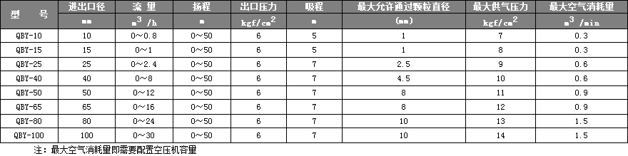 注:空氣消耗(hào)量即需要配置空壓機容量