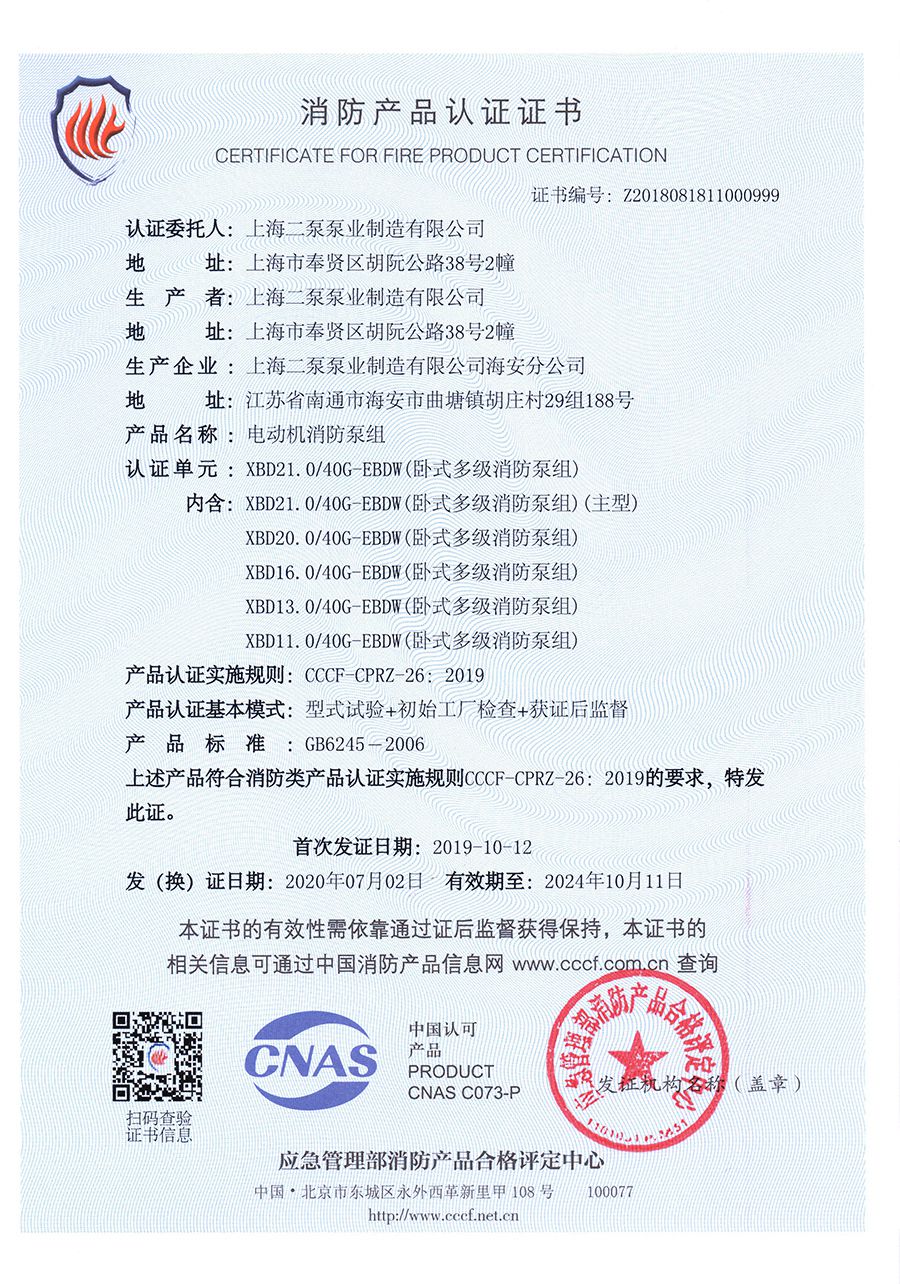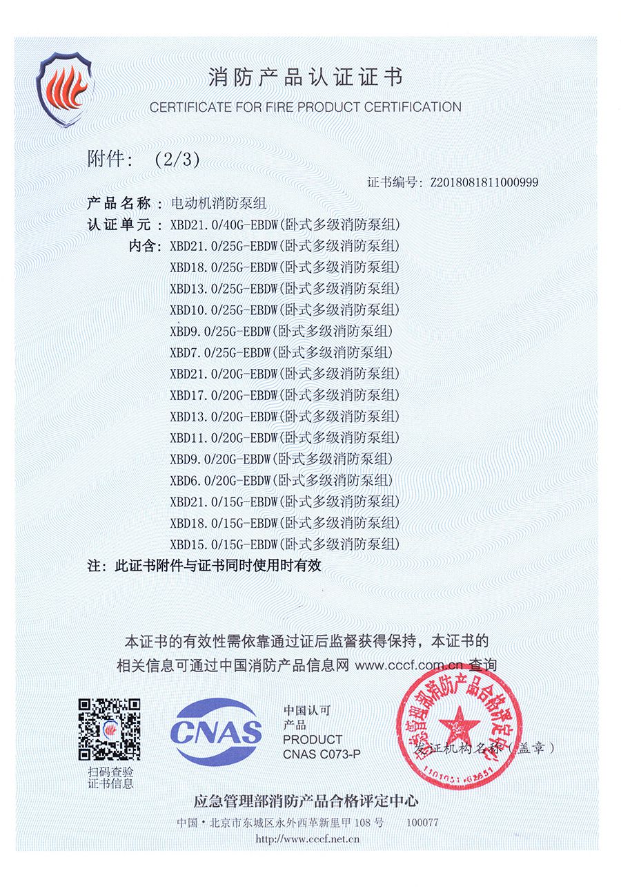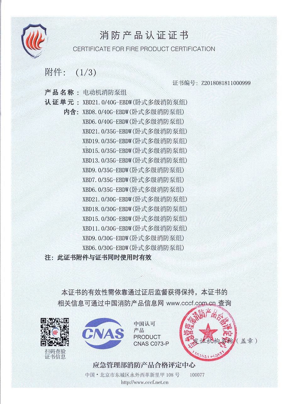 臥式多級EBDW-消防產品認證證書